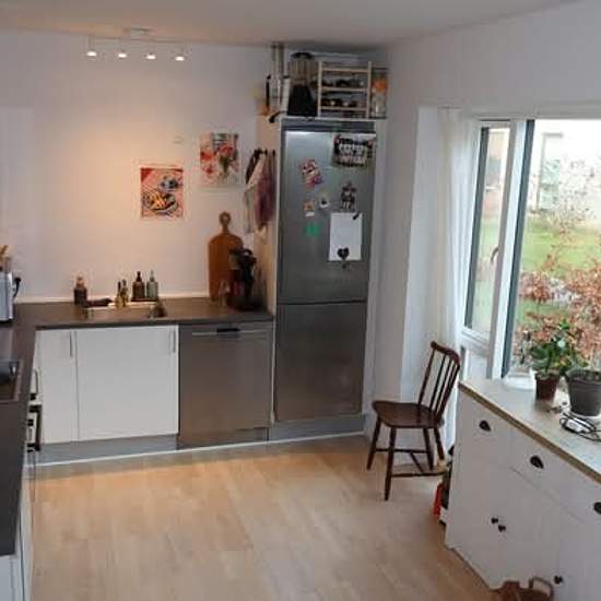 **Roomie til stor 4-værelsesrækkehus søges!** **Indflytning 1. april** Da vores tredje roomie flytter, søger vi nu en ny roomie (ubegrænset fremleje) Tove ditlevsens Gade, Aarhus N,Rækkehus (113 m2): 1. Det er et rækkehus og består af to etager (stue & 1. sal). 2. 1. sal består af mellemgang, 3 værelser og 1 badeværelse. 3. Stueetagen består af køkken (ovn, komfur, køleskab, fryser og opvaskemaskine), stue, spisebord og badeværelse (vaskemaskine & tørretumbler) 4. Vi har en lille forhave foran ved hoveddøren & en altan til den anden side...