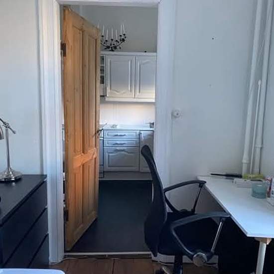 Room in the heart of Aarhus City, 9 sqm. Price 3500 kr. (deposit 7000 kr) for rent from 1 April 2026 (possibly earlier by arrangement) in an older large historic apartment. The room is furnished with a bed, desk, chair, chest of drawers and clothes rack. In addition to you, a total of three well-educated adult women of different ages live here; we have busy everyday lives, mostly mind our own business and only meet occasionally in the common rooms. There is a large bathroom, kitchen and hallway. We share these. Included: electricity and he...