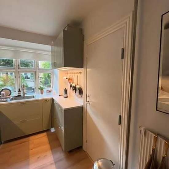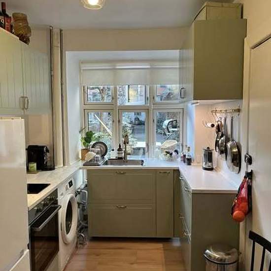 I am renting out a bright and cozy room of 9 sqm in my newly renovated ground-floor apartment of 54 sqm. Lovely location right by the Lakes on Helgesensgade, a quiet side street off Ryesgade, which offers small local shops and lots of charm. Here you get both peace and city life at once. You live close to: Nørrebro (5 min), Trianglen metro station as well as Fælledparken and the city centre. The apartment was completely renovated about a year ago and appears brand new with: - New kitchen - New bathroom and toilet - New floors, walls and d...