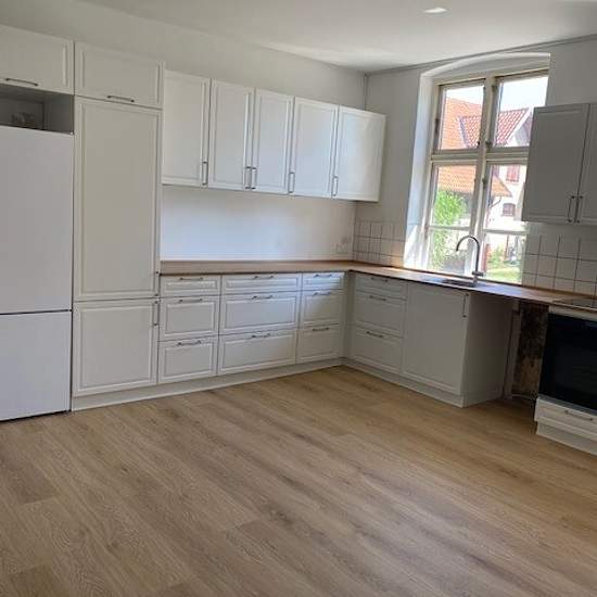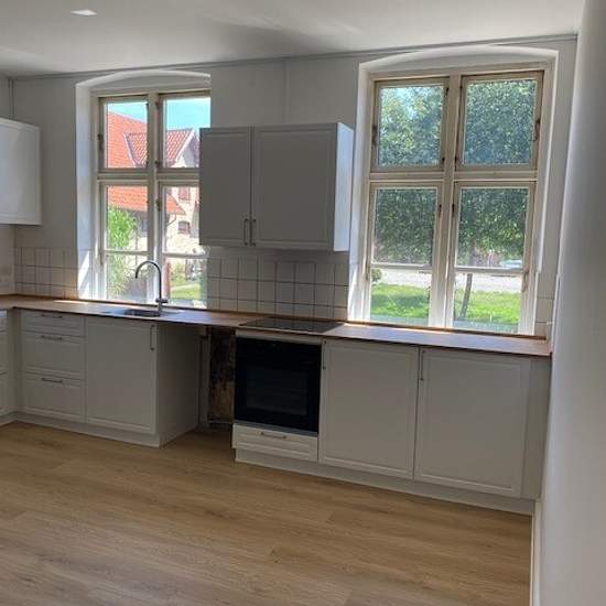 Associated with Aastrup Kloster you will find the Avlsgården, which houses three other rental units. It is situated separately with its own entrance and access to a small garden. Here you get a lovely, large newly renovated and stately apartment, with a large brand-new eat-in kitchen centered in the middle of the apartment, as well as a large high-ceilinged living room with stucco and an old fireplace, the original wooden floor, and a view of the beautiful Aastrup Kloster. In addition there is a large bedroom also with the original wooden fl...