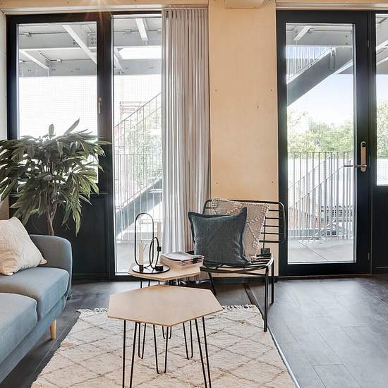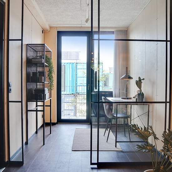 Welcome inside a "Container" like no other! In the heart of Musicon you are invited into a beautiful, bright container that has been converted into a completely ordinary apartment. No detail has been spared! All units are equipped with their own kitchen and bathroom, underfloor heating and ventilation, and are finished in quality materials and arranged for optimal use. Please note that the photos are from a comparable rental and may therefore differ from the actual conditions. It is not possible to rent the apartment if you are registered...