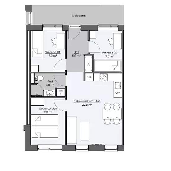 Contact us to view this first-floor apartment in the active co-housing community Plushusene in Hedehusene. You rent your private residence. On the ground floor there is access to a storage shed. The apartment has four rooms (three bedrooms and a living room open to the kitchen). The rooms are bright and functional. The kitchen is from HTH with white handleless fronts, a granite countertop, an induction hob and an oven with pyrolytic cleaning function, a fridge/freezer and a dishwasher — all Siemens. The bathroom includes a washer-dryer stac...