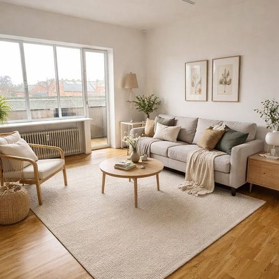 Welcome to this bright and lovely apartment. You enter into a neat entrance hall with built-in closets and plenty of space for outerwear and shoes, providing a calm and organized start to the home. From here, the residence distributes to the living room, with access to a room that can serve as an office, children's room, guest room, and more. The large window section in the living room creates a bright and friendly space that is easy to furnish, with access to a cozy balcony with space for a café set. The kitchen is separate and designed wit...