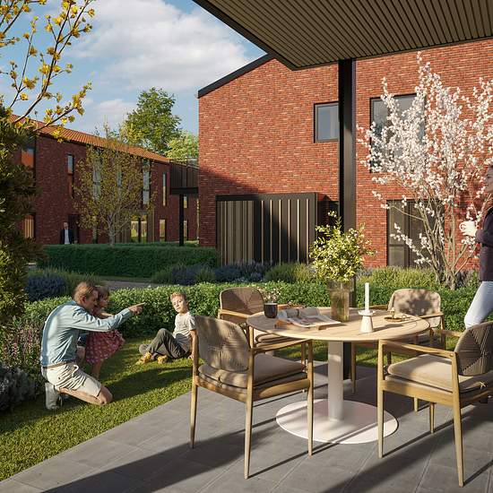 Bronzehaven - a brand new development in Køge consisting of 38 rental homes ranging from 76 to 106 m² with 3-4 rooms. The homes are built on a former country estate in Køge. Here, you will find a communal garden, your own avenue, and old protected trees. The name comes from a protected burial mound from the Bronze Age located on the property, framing the view of Køge Ås. The 38 rental homes are arranged in seven buildings over two stories, connected by green areas and child-friendly paths. All homes are on one level, either on the ground flo...