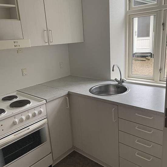 Super lækker og hyggelig lejlighed. HTH køkken med køleskab, NYT keramisk komfur og emhætte. Badeværelse med bruseniche. INGEN DYR eller rygning. A\'conto varme 600,- + vand 200,- Lejligheden er nymalet og total rengjort ved indflytning. Ejendommen er udstyret med porttelefon. Stor fælles p-plads, tæt på indkøb. Stor fælles have. 200 meter fra gågaden. Fælles vaskeri i kælderen og skur til opbevaring i haven.