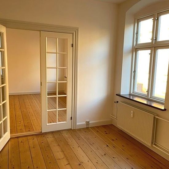 This apartment is centrally located in Odense, a short distance from Munke Mose, where you can enjoy green surroundings and peaceful moments. At the same time, you live close to the pedestrian streets with their many cafés, restaurants, and shops – perfect for those who want both nature and city life right outside the door. The apartment includes an entrance hall, one bedroom, two living rooms, a kitchen, and a bathroom. Here you get a classic and spacious layout with room for both everyday life and guests. Everyday life flows easily with mo...