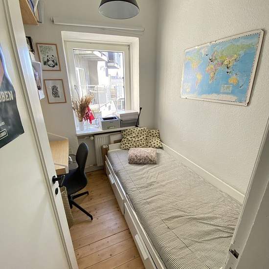 Charming 3-room apartment located in Vesterbro, 9000 Aalborg. The apartment is situated right in the centre of Aalborg, with Aalborg’s vibrant café and city life within a short distance. In addition, there is a short distance to the waterfront, various shopping options and public transport. The rental comprises an entry hallway with access to a nice newer kitchen with a dishwasher, which has an exit to a small balcony. From the hallway there is also access to the apartment’s two bedrooms and a fine bathroom. From the apartment’s bright and...