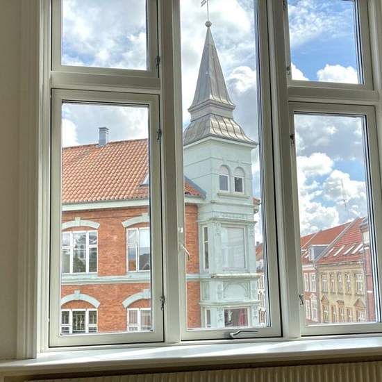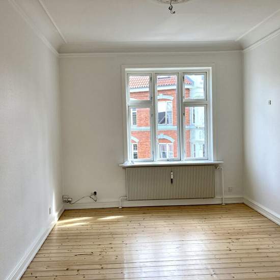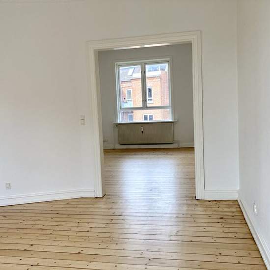 Cozy 3-room apartment in a quiet location in Aalborg city centre with easy access to good shopping, the pedestrian streets, cinema, theatre, public transport, etc. The apartment is laid out with a lovely entrance/hallway, bright bathroom, nice kitchen, spacious bedroom and two cozy living rooms en suite. There are no doors between the two living rooms. This fine apartment is located in a charming and well-maintained building with a pleasant courtyard. There is access to a shared bicycle cellar and laundry cellar. The lease cannot be termi...