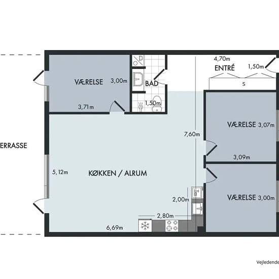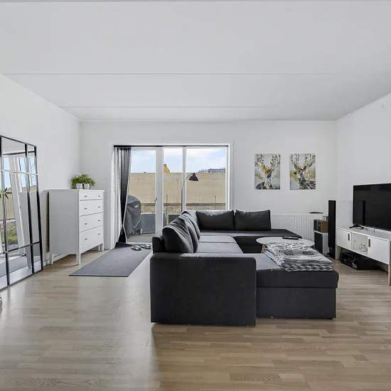 Welcome inside this beautiful, share-friendly 4-room apartment located on James Tobins Alle. The apartment has everything you need—both for a small family and for friends who want to share the place. The apartment's 90 square meters are laid out with an entrance hall with closets, a lovely and spacious living area consisting of a combined kitchen/dining area and living room, 3 good bedrooms, and a nice bathroom with tiles, a separate shower niche, and a stacked washer-dryer. From the living area you have access to the apartment's lovely te...