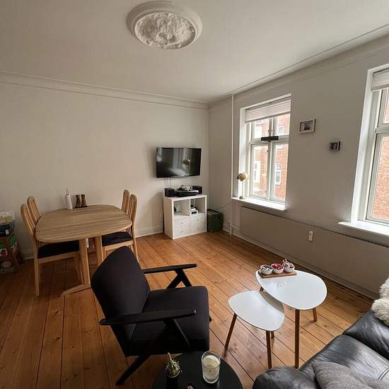 Lovely 2-room apartment located on Holbergsgade, 9000 Aalborg. The apartment is centrally located in Aalborg with a short distance to the marina, Aalborg Streetfood, various shopping options and public transport. In addition, you are within walking distance of the city center with good shopping opportunities, cafés and restaurants. The apartment contains a nice kitchen with access to a lovely, large balcony, a neat bathroom with a separate shower, a bedroom with closets and a spacious living room. Furthermore, there is a storage room and ...