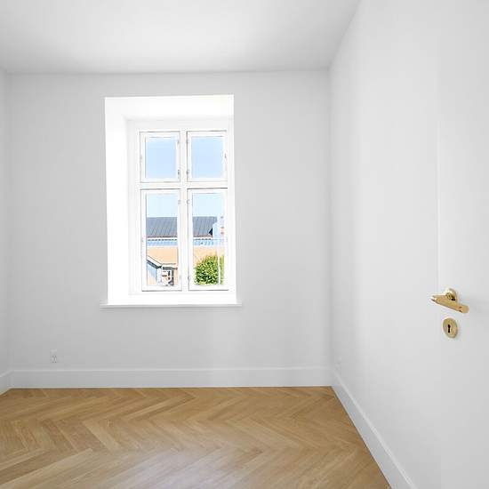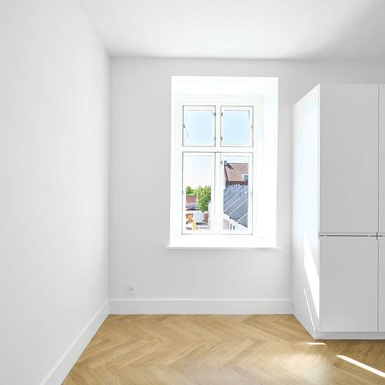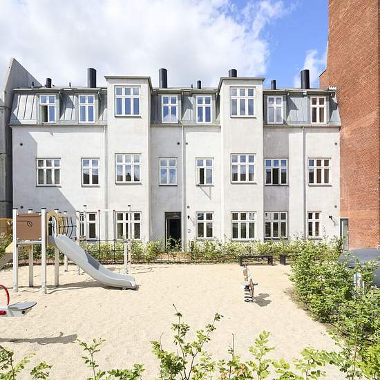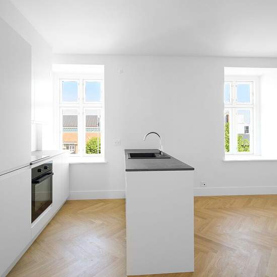 Welcome to Rugårdsvej — a beautiful and spacious 65 m² apartment, located in a building converted from a factory into residences with modern amenities and quality materials. The apartment contains two separate bedrooms as well as a bright living area with an integrated kitchen. The layout makes the home ideal for a small family or for two students who want to share a residence with a common living room and their own bedroom. The open kitchen-dining area is fitted with sleek units, ample cupboard space and integrated appliances, including a...