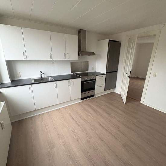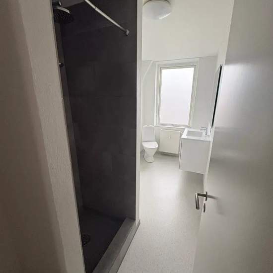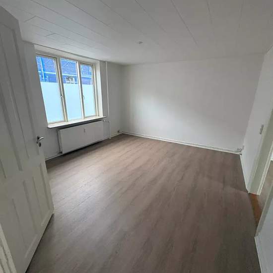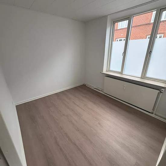 Lovely apartment with a central location, close to public transport, shopping and schools/daycare, yet set back from Vejle’s nightlife. Beautifully renovated apartment with brand new floors, comprising a small entrance hall with space for outerwear, a large neat bathroom, a large bedroom, a living room and a newly installed HTH kitchen. The property has a courtyard shared with the two other residents. In addition there is a communal laundry room with a washing machine and tumble dryer available for use.