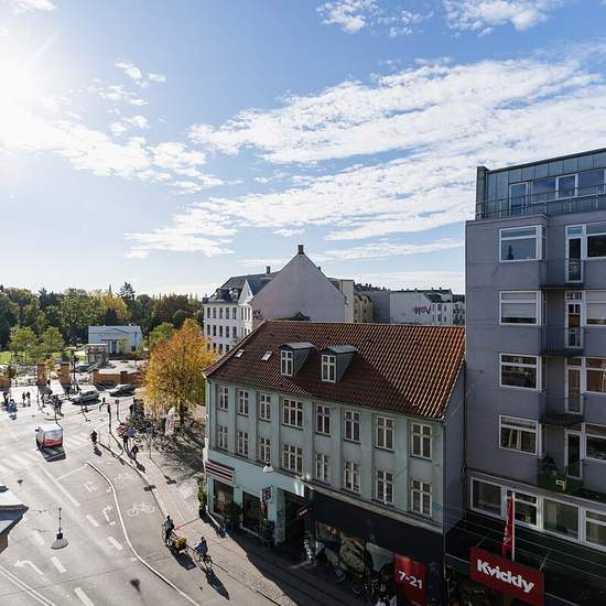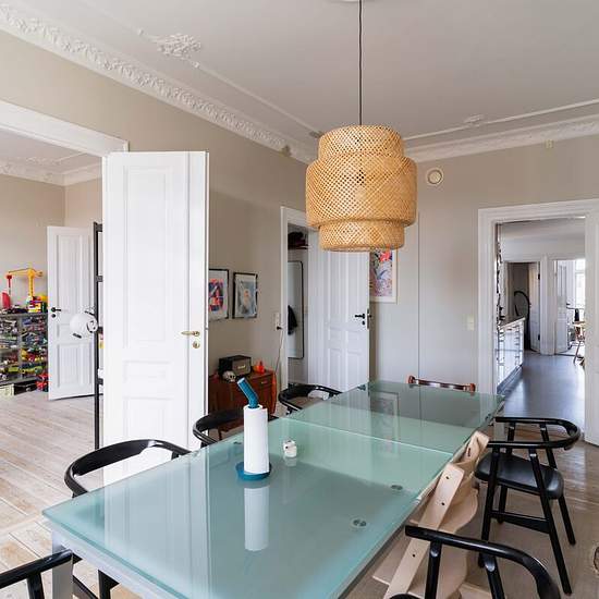 On the attractive Nørrebrogade, this bright and spacious 140 m² apartment is now for rent. It is in good condition and offers plenty of classic Copenhagen charm. Here you get a home with lots of space, high ceilings and beautiful details—perfect for those who want to live centrally with everything Nørrebro has to offer right outside the door. The apartment features two rooms en suite, creating a natural flow between the living and dining areas and giving a bright, open feel. In addition there are three good bedrooms with many furnishing pos...