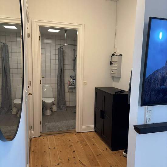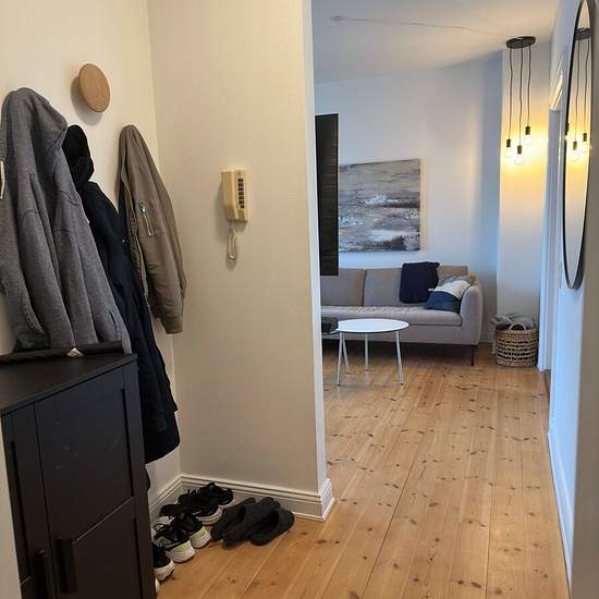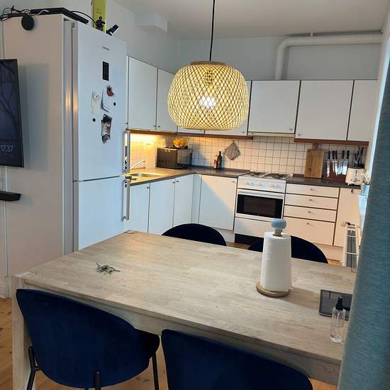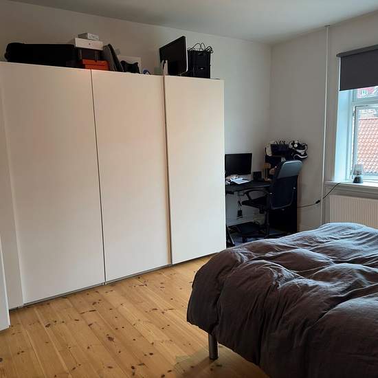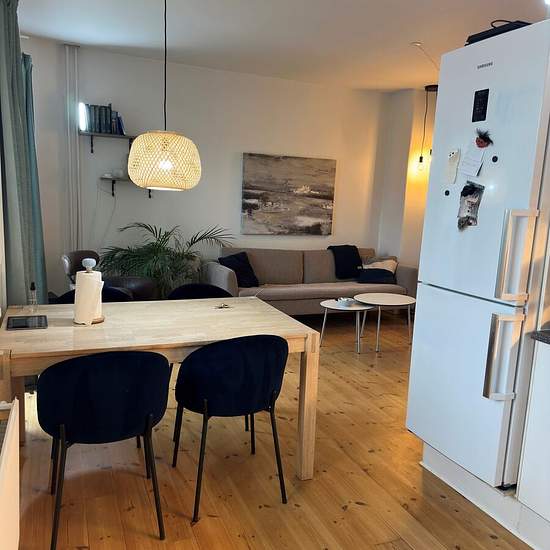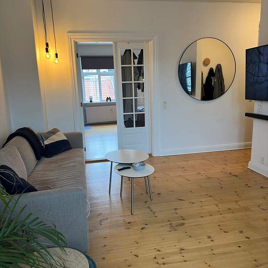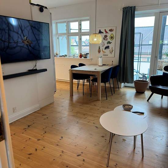 Lovely 2-room apartment located in the heart of Aalborg. Welcome to a nice, move-in ready apartment in the heart of Aalborg with a short walking distance to cafés, student life, shopping, etc. The apartment is situated in central Aalborg, close to Kennedy Arkaden, Kildeparken, the waterfront and various shopping options. There is also easy access to public transport so you can get around the city quickly and easily. The apartment consists of a lovely, spacious open-plan kitchen-living area with good space for a cozy dining spot and sofa a...