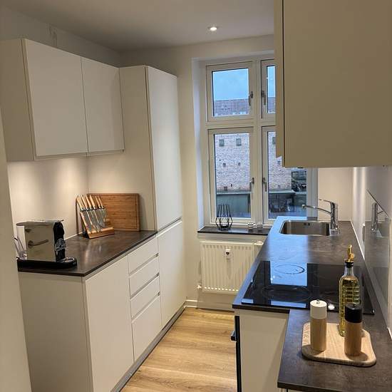 Nice 2-room apartment on Kastetvej in Vestbyen Here you get a large, bright apartment with a fairly new kitchen and bathroom. Short distance to almost everything – the fjord, transport, shopping, Haraldslund swimming pool, Aalborg Streetfood, etc. The apartment includes: - Entrance hall - Large bright living room - Bedroom with attractive white closets and access to a balcony - New white kitchen with all major appliances, including a dishwasher - New bathroom with wall-hung toilet and a nice shower niche - Laminate plank flooring from Tim...