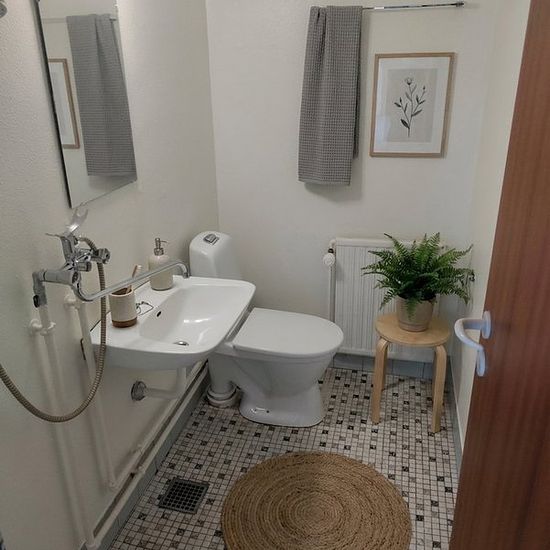 Welcome to a functional 2-room apartment of 50 m2 on the ground floor, where everyday life flows easily with a private terrace and parking at the property. The floor plan is simple and user-friendly with a bright living area as the apartment's natural gathering point. There is plenty of room for a sofa and dining table, and from the room, there is direct access to a small, sheltered terrace that extends the living area during the warm months. The bedroom is bright and easy to furnish with space for a bed and storage, and the wooden floors pr...
