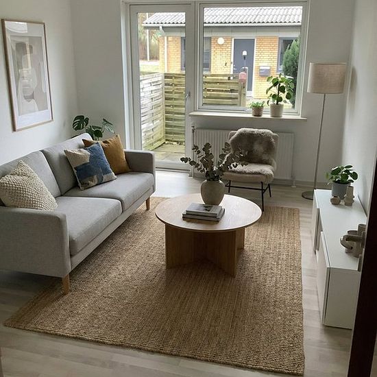 Welcome to a well-designed single-story townhouse of 43 m2, which utilizes the square meters efficiently and offers a peaceful base in a low townhouse development. The home welcomes you into an entrance hall with space for outerwear and shoes before you step into a separate kitchen with a simple, white style. Here you get good cupboard and counter space, an oven with a ceramic hob, and a window that provides natural light for cooking. The living room is bright and easy to furnish, with space for both a sofa and a dining table. The large wind...