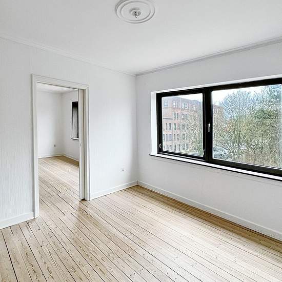 Nice and spacious 3-room apartment located on Fyensgade in 9000 Aalborg. The apartment is situated in the lovely Ø-gade quarter, a short distance from the green areas at Østre Anlæg, various shopping options and public transport. Additionally, it is no more than a 10-minute bike ride to Aalborg city centre. The apartment comprises a hallway with large built-in closets, two living rooms en suite, a bedroom with access to a lovely balcony, a bright kitchen with good cabinet and counter space, and a nice bathroom. The tenancy is taken over a...