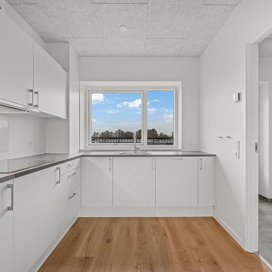 Welcome to a modern three-room apartment of 80 m2 with a functional layout and a bright, calm finish. The property is located in a newer development with light brickwork and green communal areas in front of the terraces, and the interior is carried out in neutral materials that are easy to furnish. Among other things, you get a private terrace, carport and a large shed. The apartment is senior-friendly. The entrance hall has tiles and practical storage. Practical stacked washer and dryer. From the entrance you step into a bright and inviting...