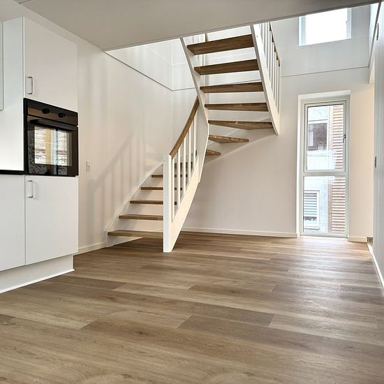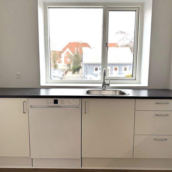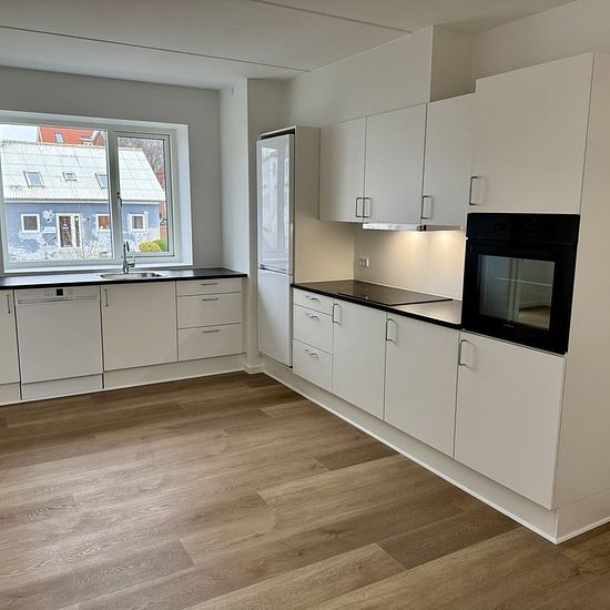 Welcome to a modern and move-in ready apartment of 98 m2, spread over two well-utilized levels. Here you get a share-friendly home with a balcony, parking at the property, and all the necessary amenities – ideal for couples, families, or as shared housing. The apartment offers a bright living room in open connection with the kitchen. The kitchen appears timeless with white elements, a black countertop, and integrated appliances, including an oven, hob, fridge/freezer, and dishwasher. There is plenty of space for a dining table, and the livin...
