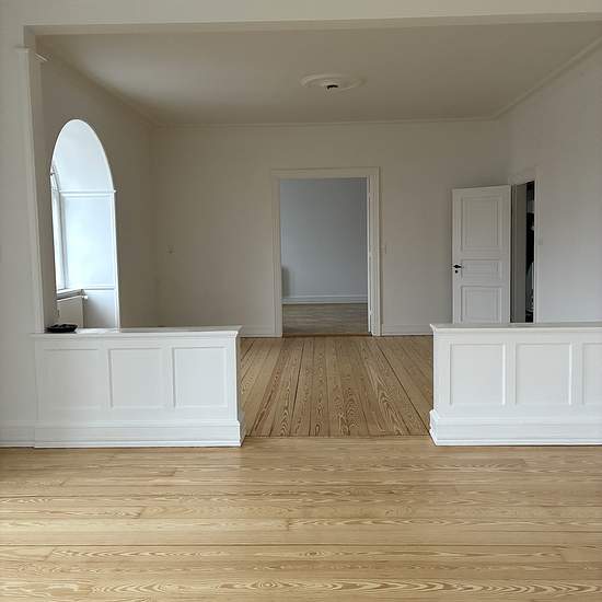 THE APARTMENT IS BEING COMPREHENSIVELY RENOVATED WITH A NEW KITCHEN, BATHROOM AND NEW FLOORS Welcome to a spacious apartment that combines classic details with a bright and inviting look. With a full 174 m² in this 4-room apartment, you get plenty of space to arrange, and the consistently light style makes the home wonderfully easy to make your own. In addition to the many rooms, you also get a newly renovated bathroom and a guest toilet. The apartment offers a generous living environment with interconnected living rooms, where the beautifu...