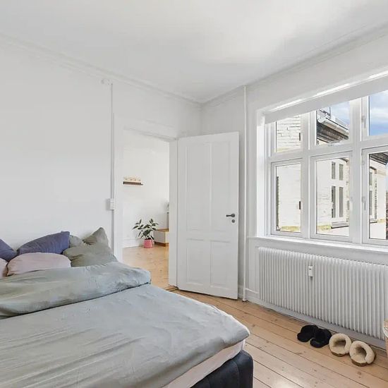 This beautiful and bright 4-room apartment of 118 m² is now available at an attractive address on Nørrebrogade in Copenhagen N. The apartment is located on the 4th floor, providing fantastic natural light and a lovely, spacious feel throughout the home. The residence offers a very good floor plan with several large and usable rooms, making it ideal for couples, small families, or those who want extra space for a home office, guest room, or hobby room. Beautiful details throughout The apartment appears inviting, well-maintained, and charmi...