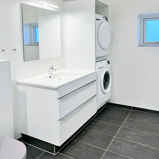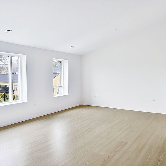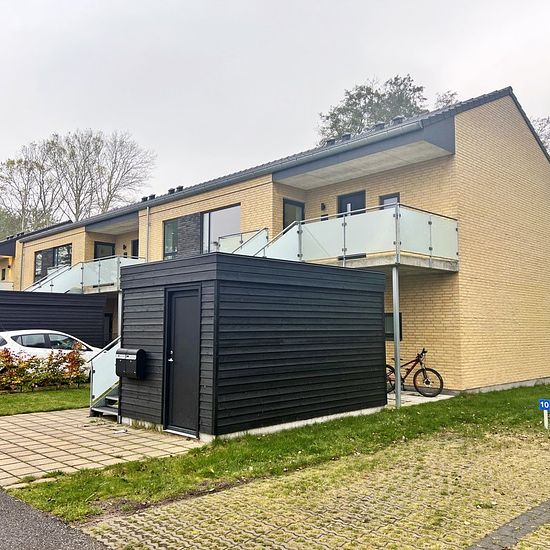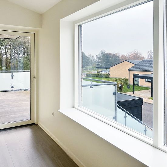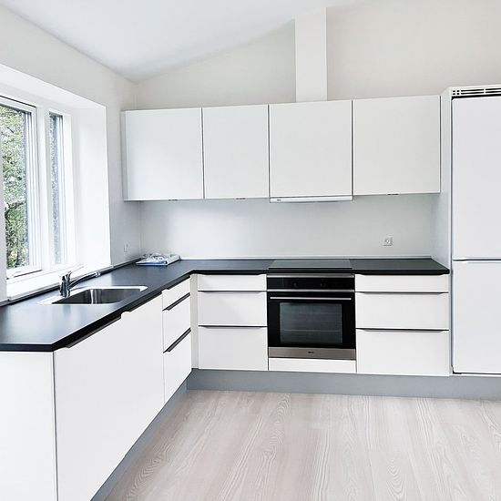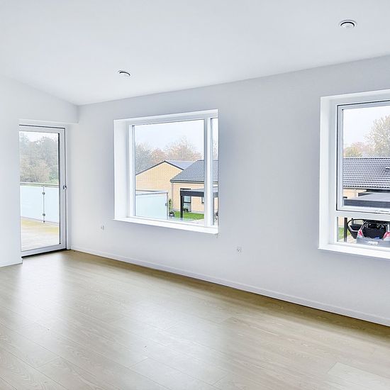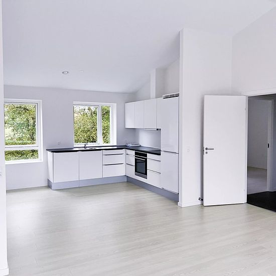 Well-appointed and modern first-floor apartment located in quiet and scenic surroundings. The residence appears bright and inviting with large window sections that provide beautiful natural light throughout the apartment. The apartment includes a spacious entrance hall with good storage space, a large open kitchen-living room combined, creating a natural setting for both everyday life and guests. The kitchen is sleek and functional with all major appliances included. Additionally, the residence offers a bright bedroom with built-in wardrob...