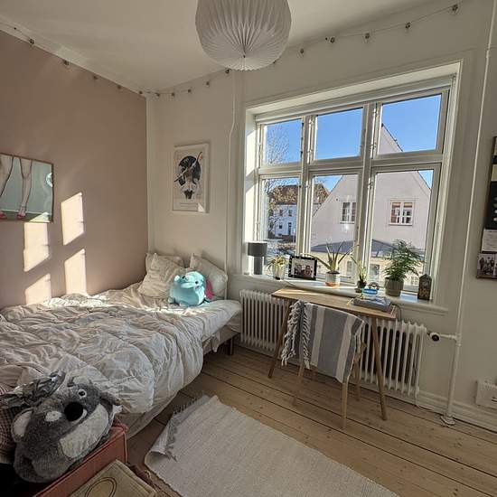 Welcome to an inviting 104 m2 apartment with a functional, everyday-friendly layout. The home appears bright and well maintained with continuous light plank floors, classic windows and a pleasant light throughout the day. The spacious living room is easy to arrange with both seating and dining areas, and large windows create a welcoming atmosphere. Double doors connect the living room to one of the rooms, which can advantageously be used as a bedroom, office or extra living space. In addition there are two further standard rooms – one with a...