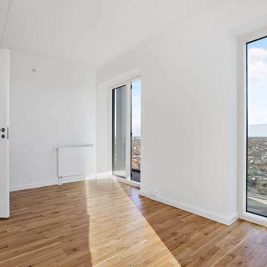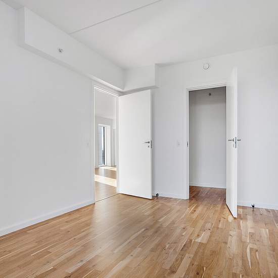 Denne moderne og veldisponerede lejlighed er indrettet med fokus på funktionalitet og komfort. Boligen byder på en rummelig entré med adgang til lejlighedens centrale rum. Lejligheden indeholder to gode værelser, som begge egner sig perfekt som soveværelse, kontor eller børneværelse. Det ene værelse er placeret separat, hvilket giver en god opdeling og ekstra privatliv. Det åbne stue-/køkken-alrum udgør boligens naturlige samlingspunkt. Køkkenet er integreret i rummet og giver gode muligheder for både madlavning og samvær, mens stuen har pla...