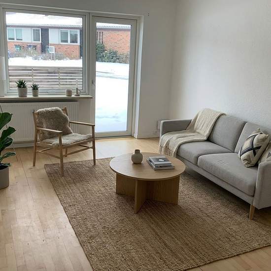 Welcome to a well-maintained and everyday-friendly terraced house of 45 m2 with a practical layout that uses the square meters efficiently. The home appears bright and inviting with continuous wooden floors and white walls, and is ideal for someone who wants a manageable base close to everyday necessities. The living area is light with large windows and direct access to a small private terrace with fencing — a pleasant outdoor space for morning coffee or a quiet moment outside. The room is easily furnished with a sofa and dining area. The k...