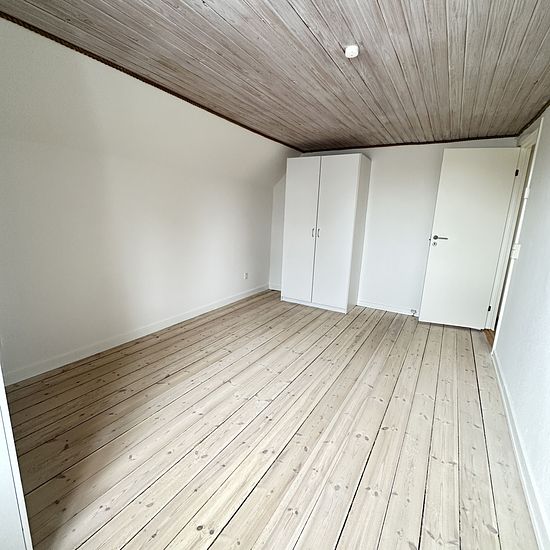 Beautiful and bright 4-room apartment of 111 m2. Located a few hundred meters from shopping and school, and the attractive natural area "Skærven". The apartment consists of a large living room, kitchen with dishwasher, and 3 good bedrooms. The entire apartment has pine wood floors. The built-in wardrobes and shelves provide plenty of storage options. The apartment also includes a locked shed that can be used as a storage room. There is a laundry cellar where you can install your own washing machine and dryer. There are parking facilities i...