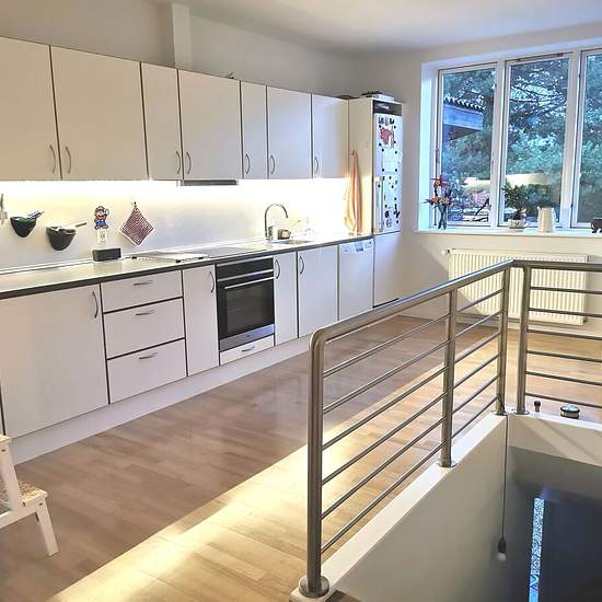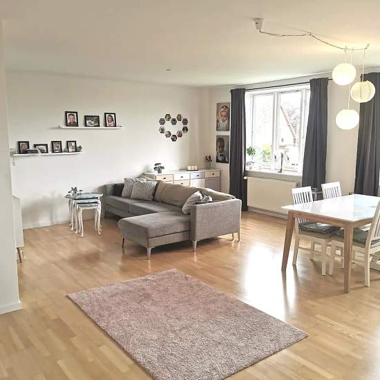Spacious 4-room apartment on Knudsvej, Faxe. The apartment was fully renovated a few years ago and is still in very good condition. 3 good bedrooms and a large, lovely living room with an open-plan kitchen. Nice property with a large communal garden, easy parking and district heating. If you like the apartment, please send us a short description of yourself.