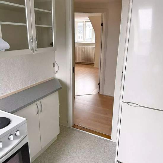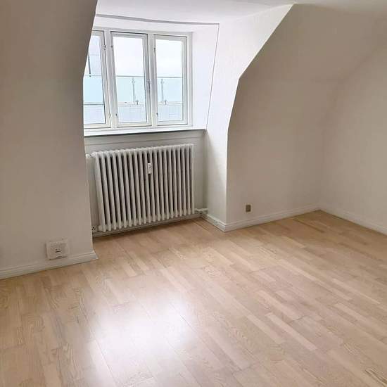 Welcome to an inviting 2-room apartment of 54 m2 on the top floor of the building, where sloping walls, dormer windows and a pleasant influx of light create a cozy atmosphere. The layout is simple and well-functioning with an entrance hall, living room, bedroom, separate kitchen and bathroom. The entrance offers space for outerwear as well as an intercom and practical shelves. The living room is bright and easy to furnish with light wooden floors, white-painted walls and a calm view over the red tiled roofs – a pleasant living area for both...