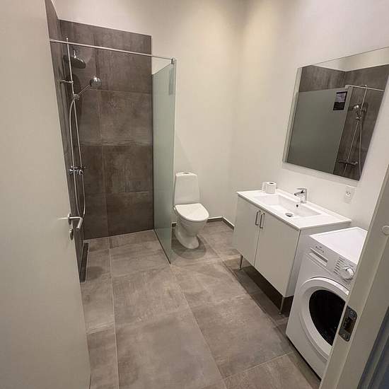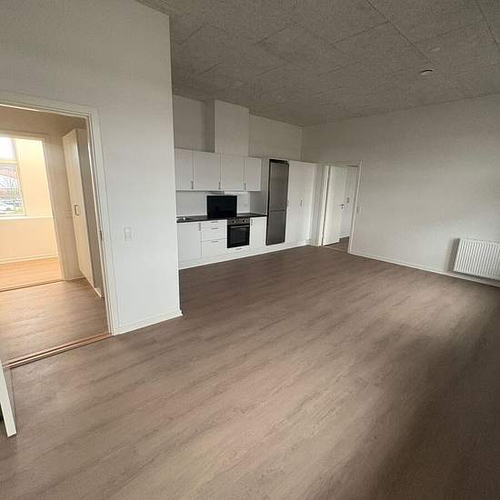 Ejendommen er komplet renoveret i 2025 og har alt hvad dertil hører. Lejlighed har flotte detaljer, masser af charme, udsigt og er unik på egen vis. Træd ind i entreen hertil indbygget skab, badeværelse med flotte klinker samt skabsløsning, stort flot åbent køkken i forlængelse med stuen samt 2 gode værelser hertil indbygget skabe. Alt i ejendommen har hårde hvidevare herunder kombi vaske/tørremaskine, opvaskemaskine samt køle/fryseskab. Derudover er der etableret troldtekt loft, genvex anlæg samt gulvvarme på badeværelset. Der er mulighed ...
