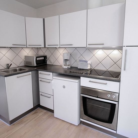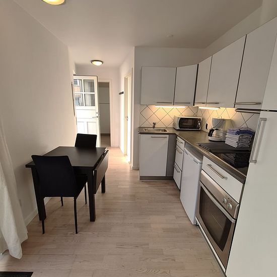 ~ Hyggelig fuldt møbleret toværelses lejlighed beliggende i egen bygning ~ - Lejligheden kommer fuldt møbleret! - Stuen: er indrettet med sofa, lænestol og spiseplads. Soveværelset har 2 enkeltsenge og klædeskab. - Køkkenet: er indrettet med hvide skabe og lyse fliser over bordet. Der er komfur, køleskab med frostboks, mikroovn, samt alt i service. - Badeværelse: bruseniche, toilet og vask med underskab. - Alle opholdsrum har gulvvarme. - Adgang til vaskehus. Tilkøb: - Rengørings- og linnedservice (ugentlig eller hver anden uge). - Parker...