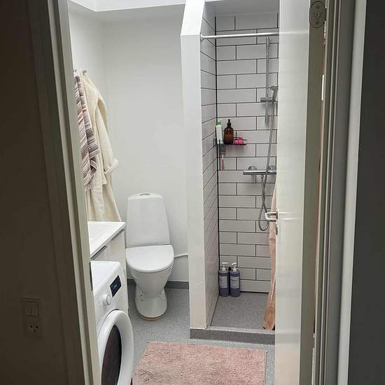 You get a super charming apartment in the heart of Vejle. The apartment is laid out with a small entrance hall, a kitchen open to the living room with exposed beams and access to a lovely balcony. Two proper bedrooms, a wonderfully bright bathroom with a skylight. All major appliances are included. Pets are not allowed. A parking space can be purchased through Vejle Municipality.