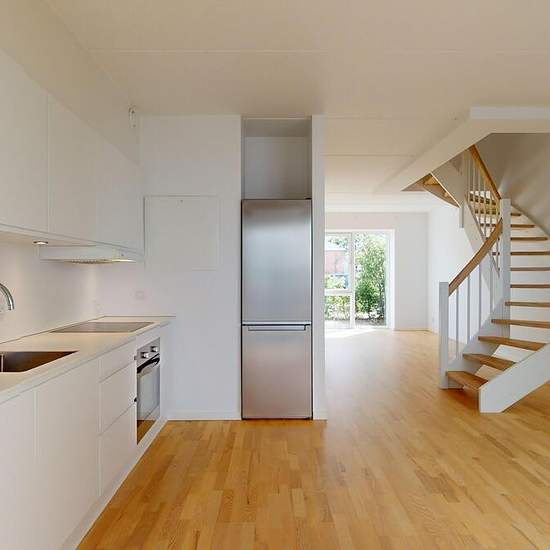 NOTE: The images are not from this rental but from a similar rental in the building. The floor plan shown in the advertisement matches the apartment. This lovely apartment of 121 sqm offers a perfect combination of modern comfort and elegant design. When you enter the ground floor, you are greeted by a bright and inviting open-plan kitchen/dining area with lovely light coming in from both sides of the room. This area is perfect for both everyday life and entertaining, with plenty of space for cooking and relaxing. On this floor you will al...