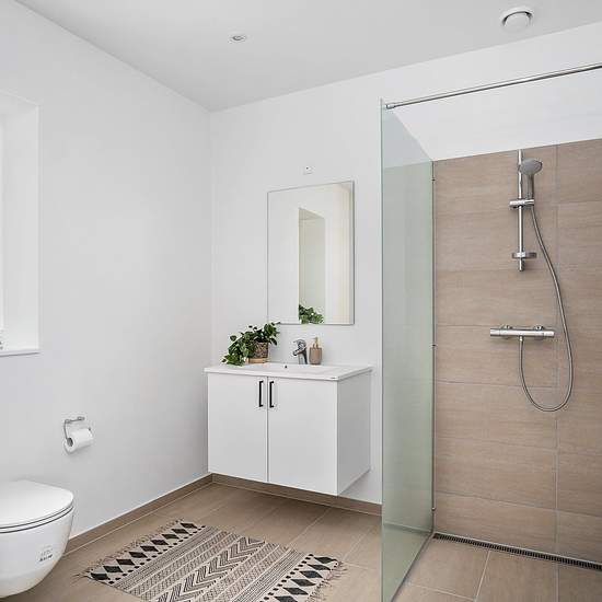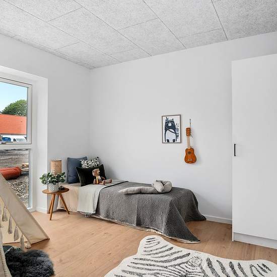 Thors Vænge is located in Ishøj Village and consists of 16 terraced houses. The project comprises four properties with respectively three, three, five and five terraced houses, each arranged in a trapezoid formation with the road winding between them and two properties on each side of the road. The townhouses are single-storey with 4 rooms, a good layout and a size of 109 m2. The homes are filled with daylight, while the well-designed layout gives tenants good flexibility and freedom in furnishing. The façade is white-rendered brick, the roo...
