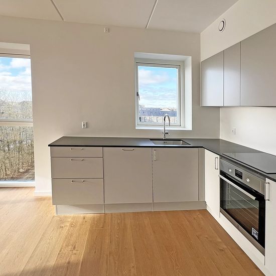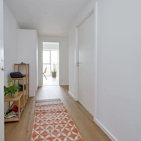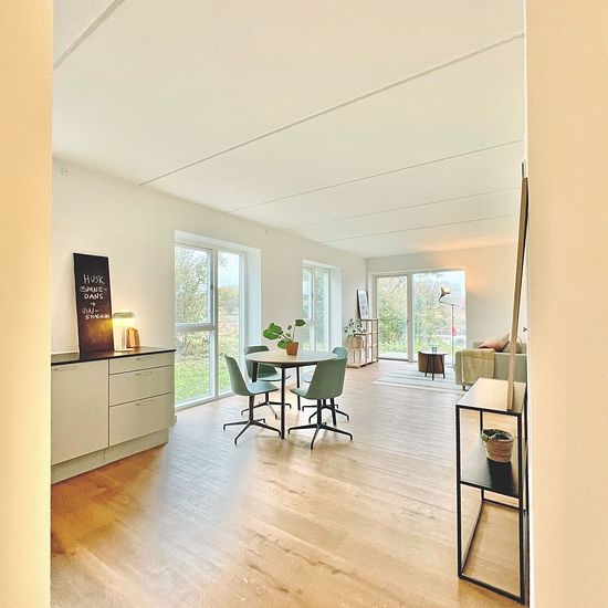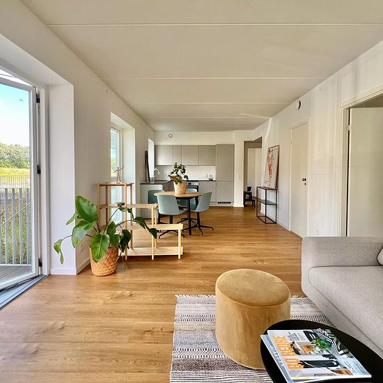 Are you looking for a place where the neighbors engage with each other, and where there is an opportunity to have an active daily life with good neighbors, close to a helping hand, safety, and joy of life? We can offer a 3-room apartment with a slightly elevated balcony (on the ground floor). The residence: Bathroom with a laundry unit with a washing machine and dryer from the brand Electrolux. From the open kitchen/dining/living room area, there is access to the balcony. The kitchen is from HTH and features light gray fronts and classic...
