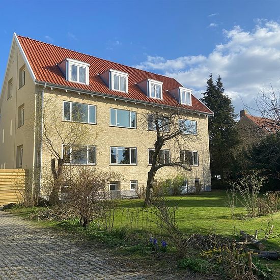 Make yourselves welcome to this nice and regular 3-room apartment with spacious rooms and a living room. The property is well maintained and includes a large shared garden for free use. This apartment also comes with a garage, and there are good parking opportunities on the premises. The apartment is rented out from 1/6-26 for 2-4 years. The apartment includes: A good entryway with space for outerwear, a lovely bathroom with shower and laundry facilities, a nice kitchen, 2 large spacious rooms, and a beautiful living room with large windows....