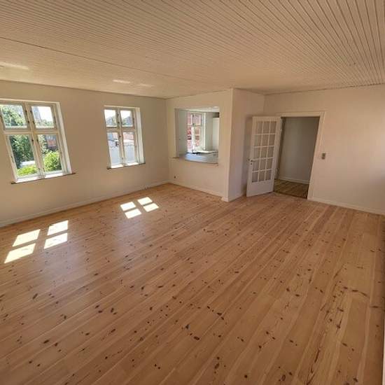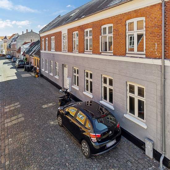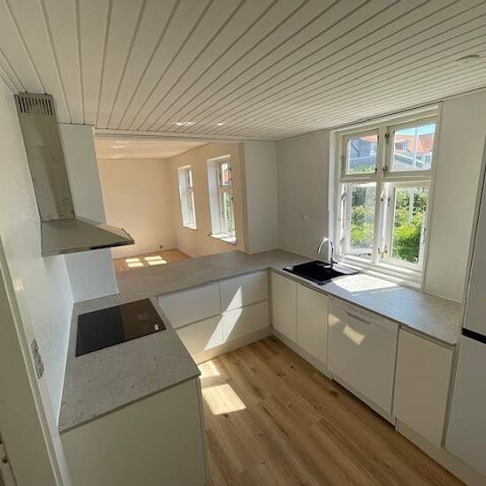 Bright and inviting four-room apartment, completely renovated in 2024, located on Slottensgade in the heart of Korsør’s old and atmospheric neighborhood. The apartment comprises an entrance hall, a spacious and bright living room with beautiful hardwood floors, and an open, brand-new kitchen overlooking the living room. Additionally, there are three good bedrooms with new floors, a new bathroom with built-in cabinetry, and a practical pantry/utility room with space for a stacked washer and dryer. The property has a cozy courtyard area shared...