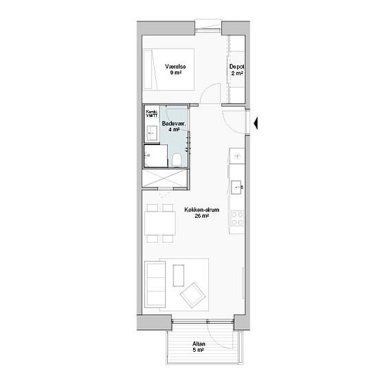 Dejlig 2-værelses lejlighed i flot og moderne boligkompleks