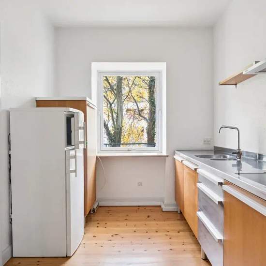Denne lejlighed er placeret i Vestbyen, som ligger kort afstand fra Aalborg centrum. Vestbyen har hurtig og nem adgang til Vestre Fjordpark og kulturbroen, hvor man både kan gå og cykle over til Nørresundby. Der er flere indkøbsmuligheder tæt på og gode offentlige transport forbindelser på gåafstand. Ved indgangen møder du en flot entre, der fører videre til de andre værelser, der alle lyse grundet vinduerne. Køkkenet er udstyret med moderne ståloverflader og træelementer, som skaber en god kombination af funktionalitet og stil. Køkkenet r...