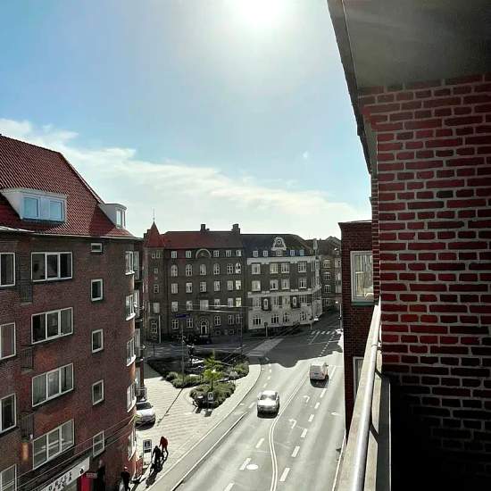 Oplev denne skønne 93 m² store lejlighed, beliggende centralt, med 2 rummelige værelser og et stilfuldt badeværelse. Lejligheden er lys og indbydende med store vinduer, der lader masser af naturligt lys strømme ind i rummene. Stuen er rummelig og har en charmerende murstensvæg. Herfra er der adgang til en hyggelig altan, hvor du kan nyde udsigten over byen og solen. De to soveværelser er enkelt indrettede med trægulve, hvor det ene værelse har indbyggede skabe, der giver godt med opbevaringsplads. Det moderne badeværelse er funktionelt in...