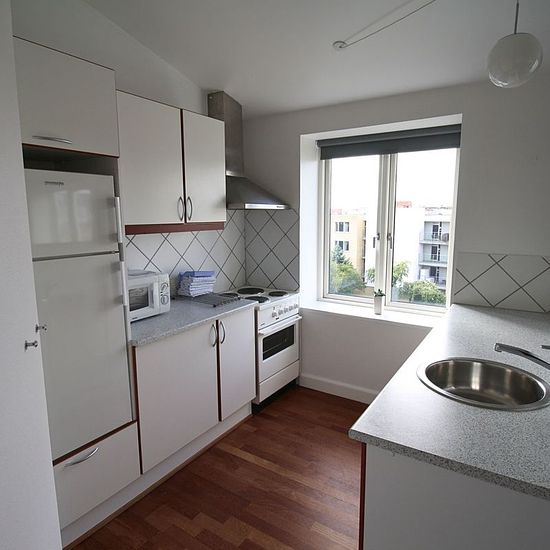 Flot fuldt møbleret taglejlighed beliggende på 3. sal i rolige og smukke omgivelser nær Århus midtby og tæt på Aarhus Universitet. Placeret perfekt mellem Århus City og Trøjborg er her rig mulighed for at opleve byen, mens lejlighedens placering på Østboulevarden sikrer rolige og behagelige omgivelser. Lejlighedens indgang har en entre med garderobe, som leder ind til den lyse stue og det åbne køkken. I stuen står sofa, lænestol og fladskærms-TV. Med fransk altan og vinduer, har stuen et åbent og lyst udtryk. Her står desuden spisebord m...