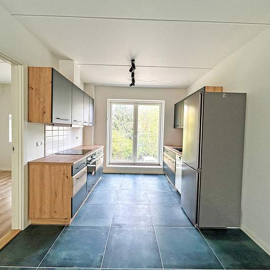Here in this apartment in a newly built property – where most things have been considered. You get 84 well-distributed square meters and there is a large west-facing balcony, an elevator, and large glass sections that allow the sun to stream in. There is a washing machine/tumble dryer in the apartment and a good-sized storage room, as well as a private parking space included. The apartment includes: a nice entrance with space for outerwear, a spacious bathroom with a shower and laundry facilities, a large kitchen-dining area directly connect...