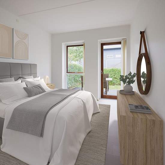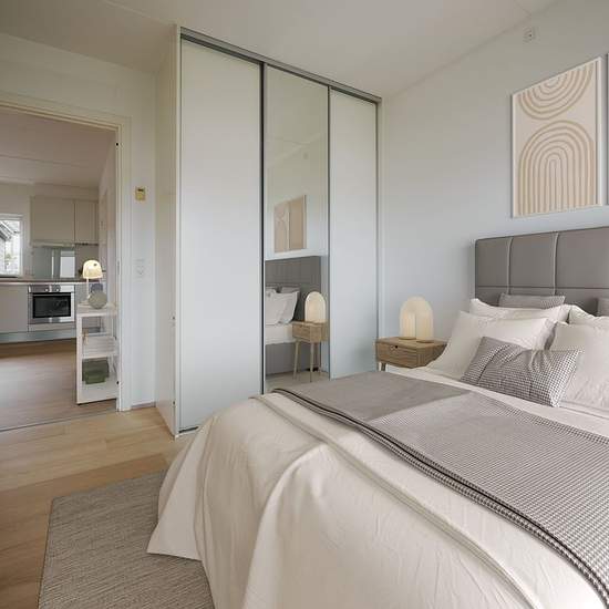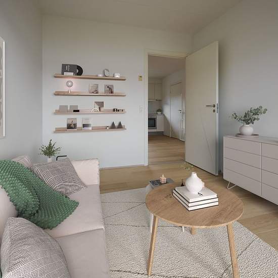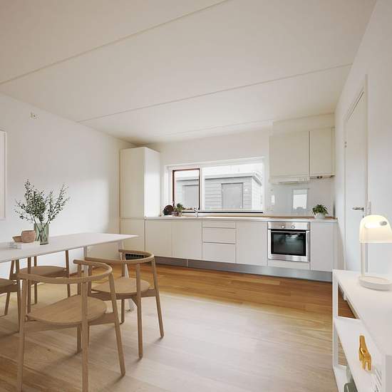 I the scenic Lystrup north of Aarhus you will find Ellebrinken and this lovely 3-room apartment. Quietly located, close to the light rail and within cycling distance of the city centre. The apartment is divided into three rooms and includes: • Entrance hall with space for outerwear and shoes. • Open-plan kitchen/dining area with all major appliances • Bathroom with beautiful light tiles, a wall-mounted toilet and a combined washing machine and tumble dryer • Two large bright rooms, one of which is equipped with three large floor-to-ceiling...
