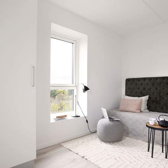 Large one-room apartment arranged with a spacious open living area featuring beautiful Pergo laminate floors and large windows that provide plenty of natural light and views over the area. In the "bedroom" there is a built-in wardrobe, and there is also space for a bed and possible extra storage/wardrobes. The apartment is fitted with a white kitchen from Svane, with all appliances from Electrolux. The bathroom is spacious, with gray tiles on the floor and white tiles in the shower niche, and a combined washer-dryer will be installed. There...