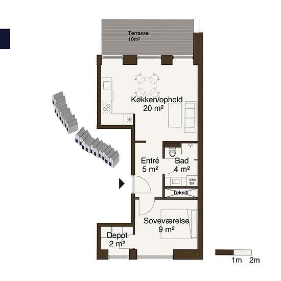 Egedal Station Town - Cozy 2-room rental apartment with private terrace
