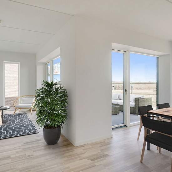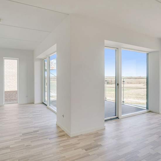 The property: Lovely apartment with a large bright kitchen-dining area and living room with direct access to the large balcony, where you can enjoy the view over the fields. The apartment has three good bedrooms. Last but not least, the home also offers a modern bathroom with a separate shower. There is also direct access to a storage room within the apartment. The apartment is bright and only the best materials have been used. In addition, there is underfloor heating and a Genvex ventilation system that ensures a good indoor climate. The ...